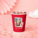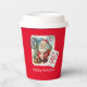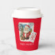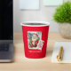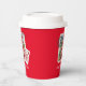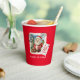 Here’s a vintage look Santa Claus paper cups. Set on a red background, which can be customised, this design has an Official North Pole stamp that says “Don’t Open Until Christmas Eve”. The text at the bottom can also be customised.