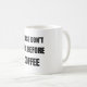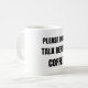 Funny coffee mug for introverts and coffee lovers who need caffeine before conversation.