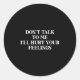 Don’t Talk To Me I’ll Hurt Your Feelings Sarcastic Classic Round Sticker