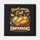 A bright, cheerful illustration celebrates comfort food with golden empanadas and playful kitchen charm.
