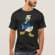 I give wanted to give this a 4 instead of a 5 because these Basic DARK T0shirts run unexpectedly SLIM or Narrow. Which is great if you do not have a potbelly, but I have a paunch. It isn't the shirt's fault that I've got a beer belly. The design and shirt itself is a quality cotton shirt. The color is more of a deep purple, but still a very pretty color. The Basic DARK T-shirts run a bit SLIMMER than the Basic Ts. The neck is a fraction narrower (or seems to be narrower) also. I'm a paunchy middle-aged woman and my neck is 12 inches (31cm) thick and the neckline fell about the same as in the photo of the man, and I had the desire to tug it a bit. So if you're a thick necked man or like loose shirts, be aware these are slimmer shirts. Once I get rid of my lockdown paunch it'll look great. The shirt washed well in cold water with no apparent bleeding. We don't have a dryer, so it hung dry. Did not shrink. Love the colors and the design. The design looks smaller on my shirt than it does on the model on-line. But still, it looks good on the shirt. The printing looks as it does on the model, just the size seems fractionally smaller. Washed garment in cold water, hung dry and design appeared unaffected.