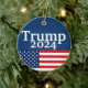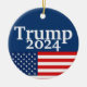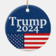 This Donald Trump 2024 presidential campaign Christmas ornament features a navy blue background with the phrase "Trump 2024" printed in white, classic font. The bottom portion of the ornament features an image of the American flag.