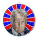 Photo of Donald Trump has been altered into a caricature design. Behind the face image is a red white and blue pinwheen style background. Just the thing for your gameroom whether you love him or hate him.