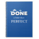 This design features a popular business concept message, DONE is better than Perfect in bold text with lighter than air clouds. Architectural blueprint drafting style with white grid on blue background.
