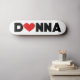 The name Donna with the letter o replaced with a red love heart. The colours can be changed.