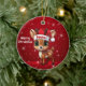Donner! Celebrate the holiday season with this festive round ceramic red ornament featuring an endearing woodland forest animal cartoon graphic of a cute baby reindeer wearing a Santa hat, and Merry Christmas written in white. Perfect deer with antlers for decorating your tree or as a thoughtful gift, this whimsical doe decor makes a cherished keepsake for years to come. Customize by changing the text, the font, the font color, or remove the text. You can even transfer this design onto other products. Enjoy this design your way! Check out ForestBabies Xmas Deer Collection for matching decorations. 🎄🦌