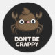 Don't Be Crappy Funny Crab Poop Pun Dark BG Classic Round Sticker