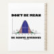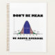 In the world of statistics, mean means average. Showcase your wry statistical sense of humour with this bell curve distribution (normal distribution curve, Gaussian curve) planner featuring the following stats truism saying: "Don't Be Mean Be Above Average". Make everyone do a double about what you are referring to with a dose of statistical attitude today with this planner! Memorable planner for any calm and rational statistician!