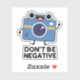 Don't Be Negative Funny Camera Pun features a cute camera reminding you not to be negative. Perfect pun gift for family and friends who love cute camera puns.