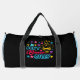 This playful black and blue duffle bag features a cute cartoon bee surrounded by colourful elements and the fun phrase "DON'T Beeeeee.... ** SILLY **". The vibrant design encourages a lighthearted approach to life. Perfect for those who love whimsical accessories, bees, or a good pun. Edit colour of the bag caps and body in the Design tool to your favored colours.