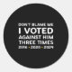 Don't Blame Me I Voted Against Him Funny Litical S Classic Round Sticker