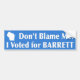 Don't Blame Me! I Voted for BARRETT Bumper Sticker