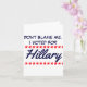 Dont Blame Me I Voted For Hillary Card