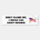 DON'T BLAME ME, I VOTED FOR SCOTT BROWN BUMPER STICKER