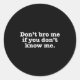 Dont Bro Me If You Dont Know Me Classic Round Sticker