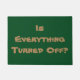 This fun doormat has a question printed in large letters to remind you to turn things off e.g. electric switches, electronics, gas ect. as you leave the home "Is Everything Turned Off?" is the question you'll see as you go to open your door. The gentle reminder will jog your memory to double check for your switches and other appliances before you leave the house, it's also a quirky and fun doormat to have in your home. This is a customisable doormat, you can choose the colour and personalise it with your own text if you wish to.