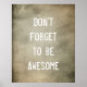 Don't Forget to be Awesome on faded grunge parchment background with grunge text. Great for bedroom or dorm room. DFTBA Nerdfighters