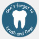 These stickers display a tooth on a dark blue background and the text, "don't forget to brush and floss." This is a great item to hand out to patients, especially children that need an extra reminder to brush and floss their teeth.