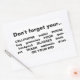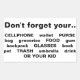 Because your conscience wants to return forgotten things, yet your patience wants to forget these lost things exist (OK the kid is harder to ignore). This sticker placed on the door or window or wherever the pax's eye hits before leaving your vehicle, will help them police THEMSELVES. This saves you TIME and AGGRAVATION.