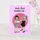 Design is brilliant - there is a male version and a female version of this cartoon and I bought both! You can personalize all the type on this card. I love these cartoon cards from Le Grand Art. I will be coming back to buy more. So pleased with the quality. Great colour and good quality cardstock.