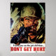 Vintage World War II home front workplace safety poster "Don't Get Hurt~I need you on the job full time" by Harry Morse Meyers, 1943.