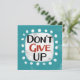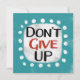 "Don't Give Up" is a cute inspirational or motivational quote with a white accent shape surrounded by white textured whimsical dots.