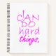 Don't Give Up Perseverance Resilience Grit Quote I Can Do Hard Things Notebook. Motivational saying for encouragement and growth mindset in hot pink hand lettering typography. Push yourself further with this unique motivating reminder to face your challenges. Don't give up! Perfect for gifting and for back to school, entrepreneurs, athletes and anyone wanting to achieve dreams or goals. Step by Step Inspiration Series available exclusively on Zazzle at zazzle.com/store/KrisHarty, designed by international designer, Kris Harty. © 2020 Kris Harty Step By Step Inspiration