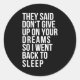 Dont Give Up On Your Dream Back To Sleep Funny Ir Classic Round Sticker