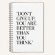 Don't give up you are better than you think notebook