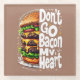 This bold and humourous design features a towering, mouthwatering cheeseburger stacked high with juicy patties, dripping melted cheese, crisp lettuce, and fresh tomatoes. Paired with the clever pun, "Don't Go Bacon My Heart," in a playful, hand-drawn font, this artwork is perfect for food lovers who appreciate a good joke. The vintage-inspired illustration, combined with a retro diner aesthetic, makes it a standout choice for anyone who enjoys classic comfort food and witty humour. Whether you're a bacon enthusiast, a burger connoisseur, or simply a fan of pun-based humour, this design brings a lighthearted and deliciously fun vibe to any setting. Ideal for BBQ lovers, grill masters, and anyone with a taste for humour and hearty meals. AI generated artwork.