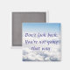 This product displays a photograph of a blue sky with clouds. On top of the photograph is the text, "Don't look back. You're not going that way."