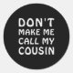 Don't Make Me Call My Cousin Funny Cousins Crew Si Classic Round Sticker