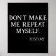 Don't Make Me Repeat Myself Funny History Buff Poster