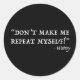 Don't Make Me Repeat Myself Funny History Classic Round Sticker