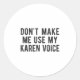 Don't Make Me Use My Karen Voice Sarcastic Quote S Classic Round Sticker