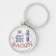 Texas bacon-lover key chain with an old west look. Red and blue graphic of a lone star, an outline of Texas, and a bacon strip. Funny bacon quote from Houston to El Paso.