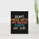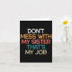 Don't Mess With My Sister That's My Job Funny Sibl Card