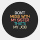 Don't Mess With My Sister That's My Job Funny Sibl Classic Round Sticker