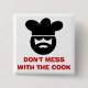 Don't mess with the cook button. Funny chef badge design with big beard, cooks hat and sun glasses. Cute bbq gift idea for men...dad, uncle, grandpa etc. Personalizable quote.