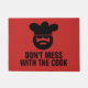 Don't mess with the cook funny welcome doormat. Cool door mat sign with chef in sunglasses and big beard. Fun entry mat for new home, restaurant, business, shop, store, cafetaria, company, eatery, diner, cafe, kitchen etc. Humourous cooking gifts for men. Add your own quote or saying. Personalizable rug for front door, entryway or hall. Customisable home decor / decorations for the house. Available in small and big large size. Red or custom colour.