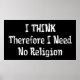 Simple and to the point saying perfect for t-shirt, stickers and buttons: "I think, therefore I need no religion."