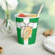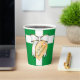 This playful holiday design features a big white ribbon and bow, that makes this paper cup look like a gift. The tag reads 'Don Not Open Until Christmas! Text on the tag, and the background colour can be customised.