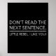 Dont Read The Next Sentence Rebel Quote I Men Wome Poster