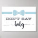 Sign for the "Don't say baby" baby shower game. Rules-> Give each guest a baby diaper pin (or clothespin) to pin on her clothes. Instruct your guests that during the party everyone is to try not to say the word baby. Whenever someone does, the first person who catches the slip gets to confiscate the pin. The one with the most pins at the end of the party wins. This game makes for continued fun throughout the shower.