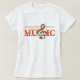 This t-shirt is perfect for the music lover! Design features an orange colour accent with a treble clef on music paper lines and the words, "Don't stop the music."