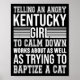 Don't Tell An Angry Kentucky Girl To Calm Down Fun Poster