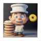 Pictured is a happy animated 3D Baker with a pile of delicious frosted Donuts