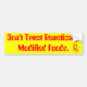 don't trust genetically modified foods. bumper sticker