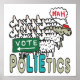 Don't Vote design shows the sheep queueing up to vote while our awake hero goes the other way. Underneath, the word Polietics tells you all you need to know about this pointless corrupt system. Stop voting for them.