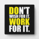 Don't Wish For It. Work For It. - Motivational  plaque!